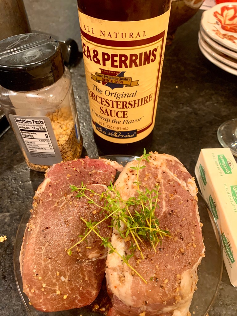 Sprinkle steaks on both sides with Worcestershire sauce, then rub with Chicago steak seasoning. Set aside.