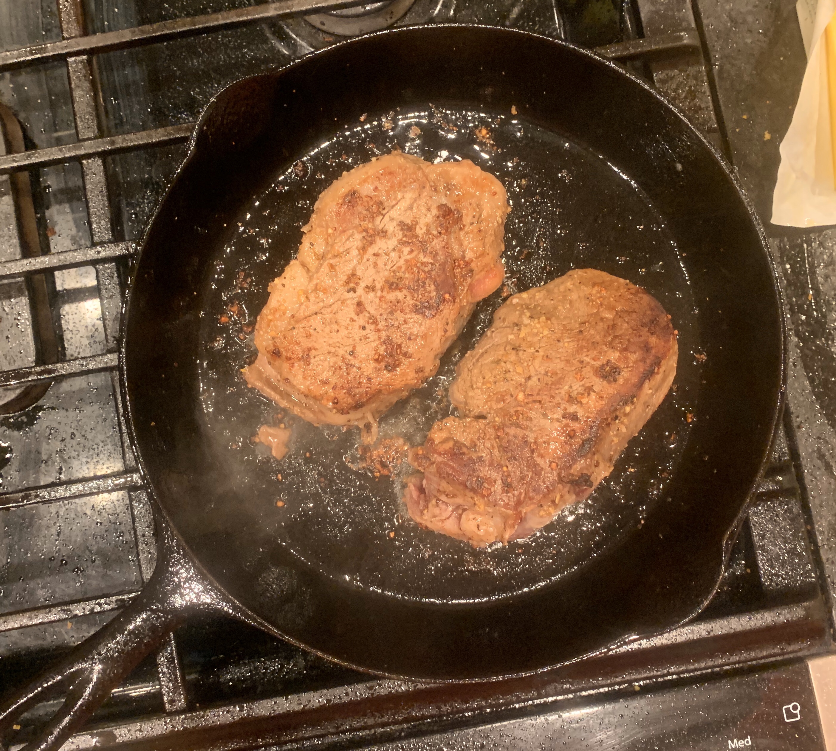 Iron skillet large enough to accommodate the steak(s) without crowding