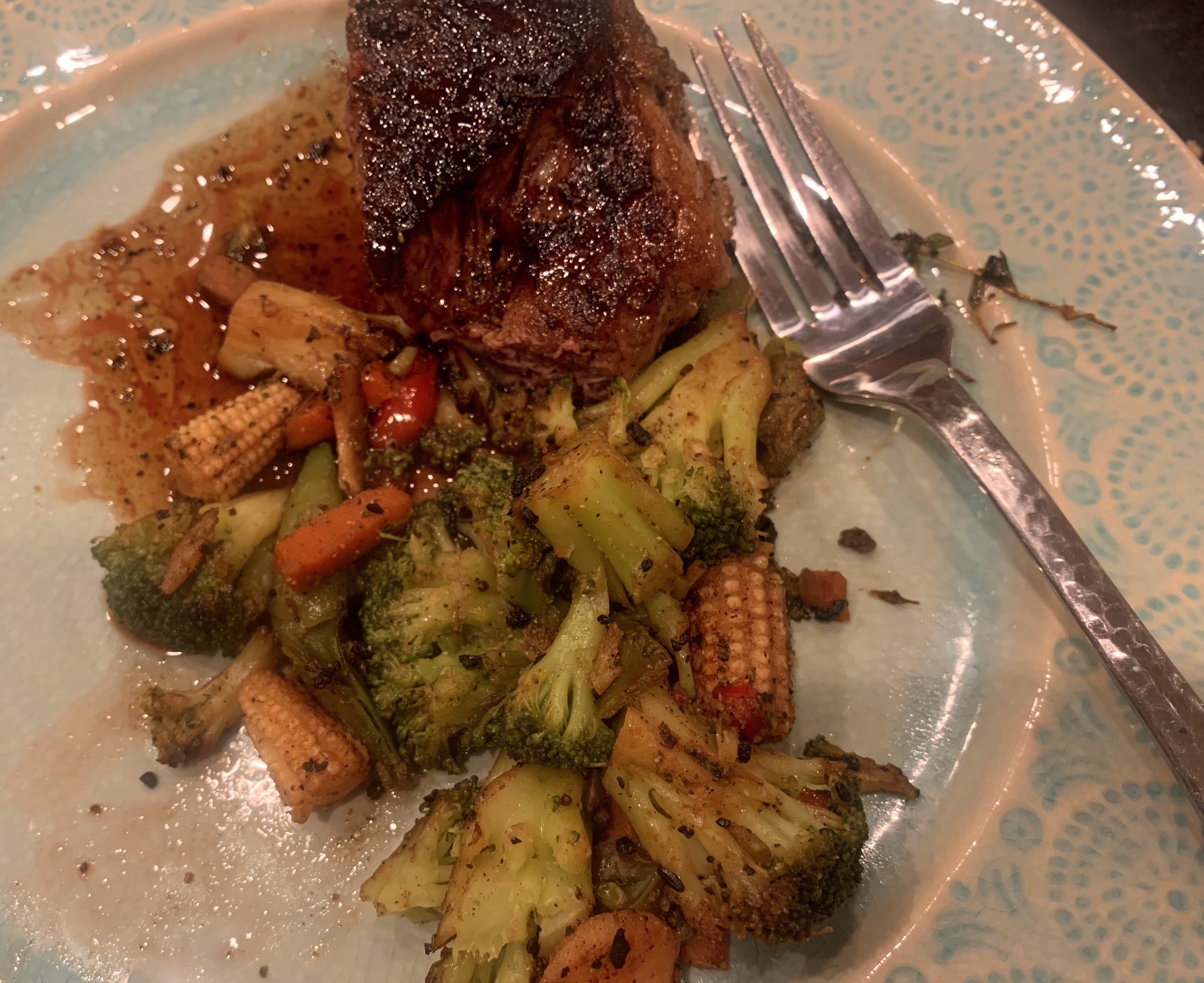 But wait! This skillet is still hot and has some delicious seasoning in it. While your steaks are resting, why not grab a steam-in-bag vegetable mix from the freezer and microwave it for a few minutes then throw it in the skillet. Add a bit of salt and pepper to taste if needed and maybe a sprinkle of garlic. Sauté until done to your liking, and tadaaaaaaaa! The perfect addition to the perfect steak.