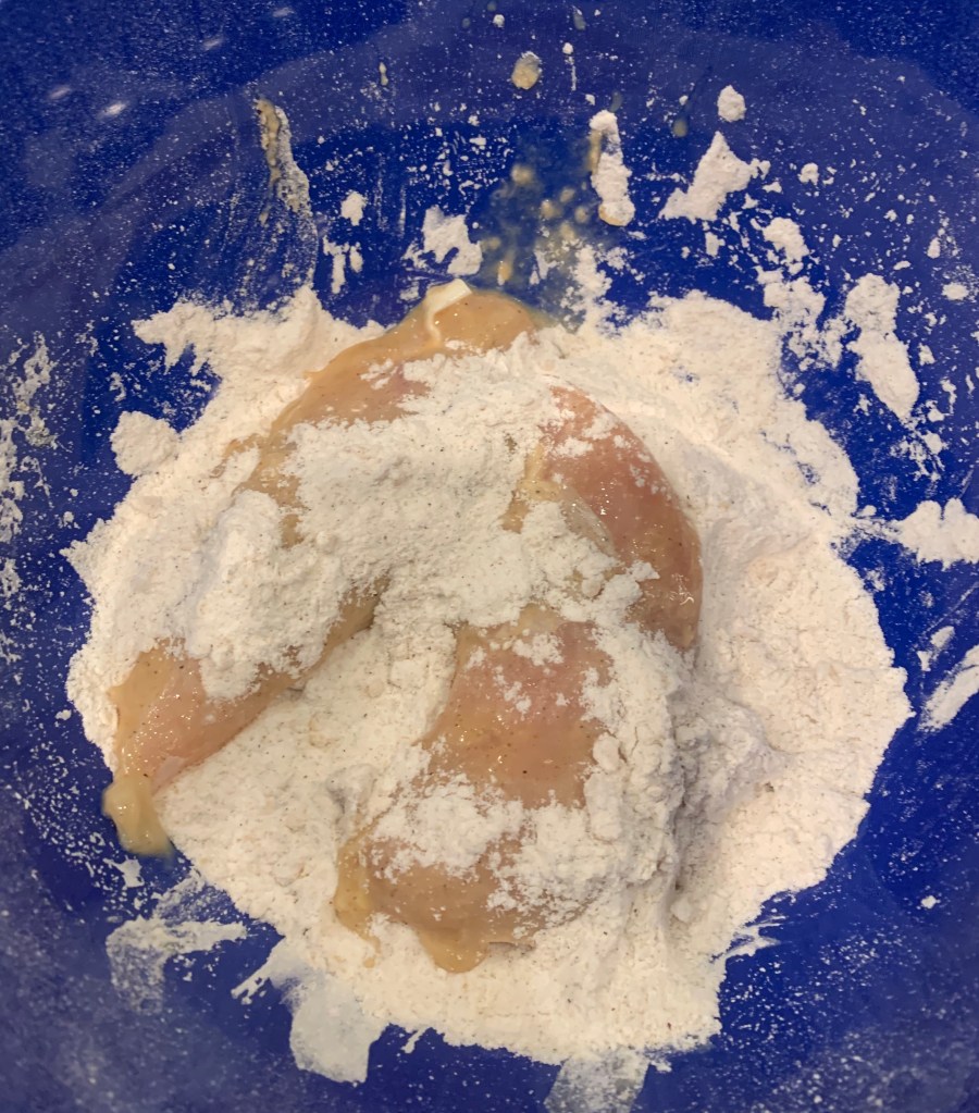 Cooking Oil (enough to fill the pan/Dutch oven 1” if cooking tenderloins and 2” if cooking whole pieces of chicken) – we use a low cholesterol healthy cooking oil. Note: We recycle our cooking oil by pouring the cooled oil into a separate container and storing it in the refrigerator. For those who are gluten intolerant, make sure the stored oil was not previously used to cook an item containing or battered with regular flour or self rising cornmeal or other gluten containing ingredients.